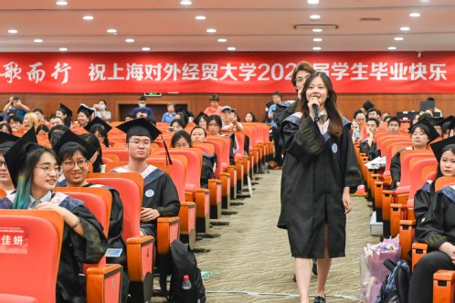 “这世界有那么多人多幸运我有个我们”毕业生代表为全体师生带来一首首歌曲,喜悦、感动、不舍在歌声中交错相融,同学们用歌声为四年的大学生活画上一个完美的休止符,并已做好准备,奔赴人生新篇章。