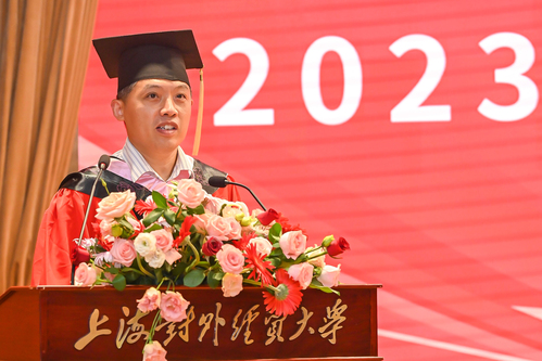 张铁铸为毕业生们送上诚挚的毕业寄语。他提到,在这四年的时光里,同学们经历了一次次的探索、蜕变和成长,这些时刻已然成为了心中永不褪色的回忆。他很开心见证了2023届毕业生从青涩懵懂的新生逐渐成长为自信、独立、追求卓越的新时代优秀青年,全院每一位老师都为此倍感欣慰与自豪。他围绕“勿忘理想”“敢于担当”“不畏吃苦”“永久奋斗”“保持豁达”五个关键词为毕业生上了最后一堂课,并在最后引用习近平总书记的寄语,希望同学们能够坚定不移的听党话、跟党走,怀抱梦想又脚踏实地,敢想敢为又善作善成,立志做有理想、敢担当、能吃苦、肯奋斗的新时代好青年!