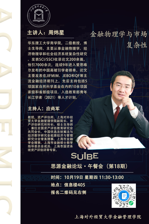【SUIBE思源金融论坛——午餐会第18期】金融物理学与市场复杂性