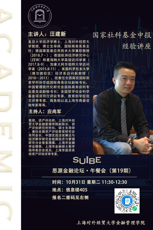 【SUIBE思源金融论坛——午餐会第19期】国家社科基金申报经验