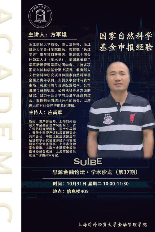 【SUIBE思源金融论坛——学术沙龙第37期】国家自然科学基金申报经验