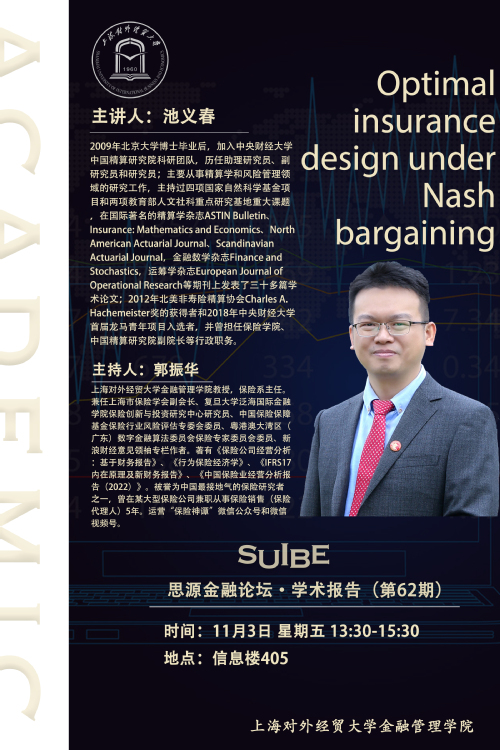 【SUIBE思源金融论坛——学术报告第62期】Optimal insurance design under Nash bargaining