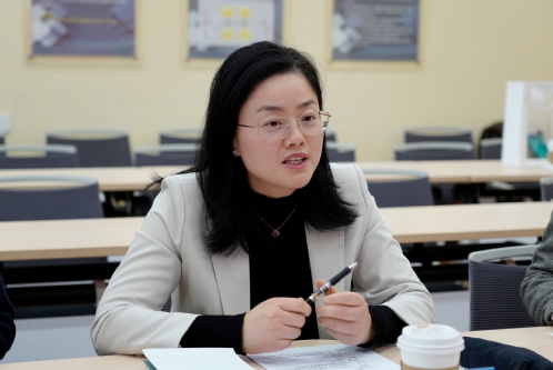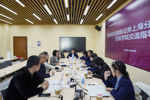 许继亮对国新证券上海分公司一行的到来表示欢迎和感谢,她介绍了学院总体情况,重点围绕人才培养模式改革、学生实习就业和长三角金融研究院等方面介绍未来发展规划。她表示,希望双方充分发挥优势,深度产教融合,为培养复合型金融人才贡献力量。
