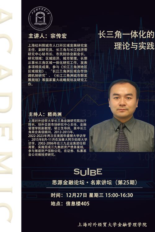【SUIBE思源金融论坛——名家讲坛第25期】长三角一体化的理论与实践