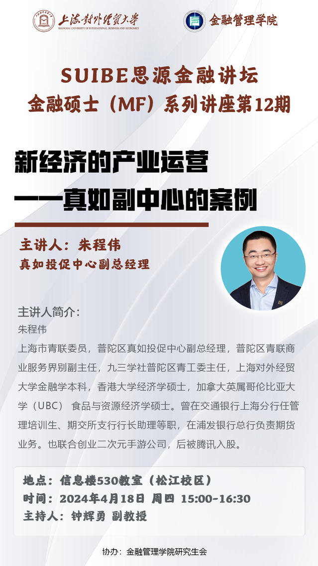 【SUIBE思源金融论坛——金融硕士系列讲座第12期】新经济的产业运营一真如副中心的案例
