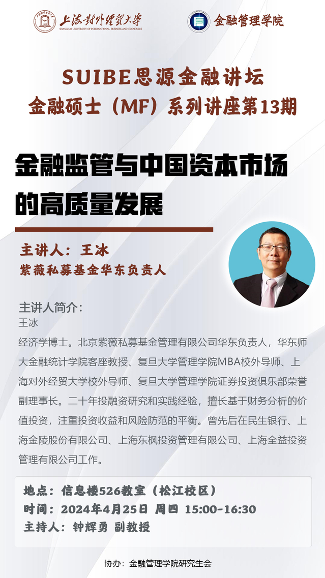 【SUIBE思源金融论坛——金融硕士系列讲座第13期】金融监管与中国资本市场的高质量发展