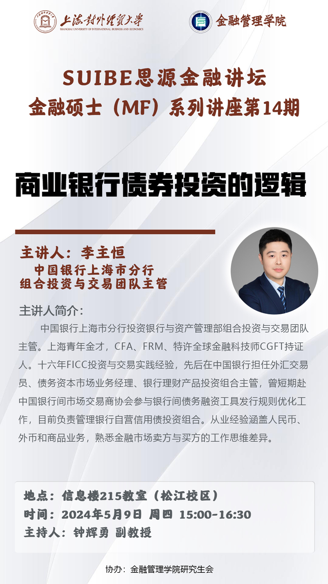 【SUIBE思源金融论坛——金融硕士系列讲座第14期】商业银行债券投资的逻辑