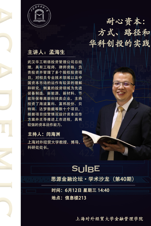 【SUIBE思源金融论坛——学术沙龙第40期】耐心资本:方式、路径和华科创投的实践