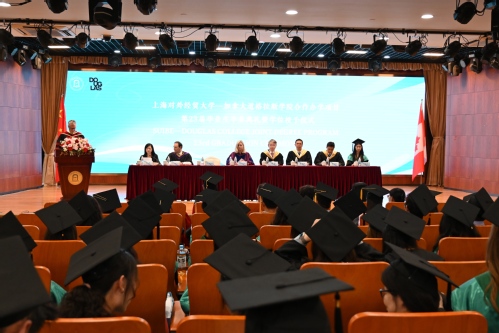 6月5日,必赢626net入口首页与加拿大道格拉斯学院第23届毕业生毕业典礼暨学位授予仪式在松江校区图文信息大楼507报告厅隆重举行。道格拉斯学院校长Kathy Denton、副校长Leonel Roldan-Flores、全球合作经理Jennifer Zhao、校长办公室名誉行政官欧阳光伟,必赢626net入口首页党委书记祁明、副校长徐永林、金融管理学院领导班子成员、中加合作教师代表、辅导员、学生家长代表以及第23届中加合作办学项目全体毕业生出席本次典礼。典礼由道格拉斯学院副校长Thor Borgford主持。