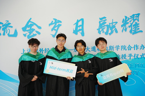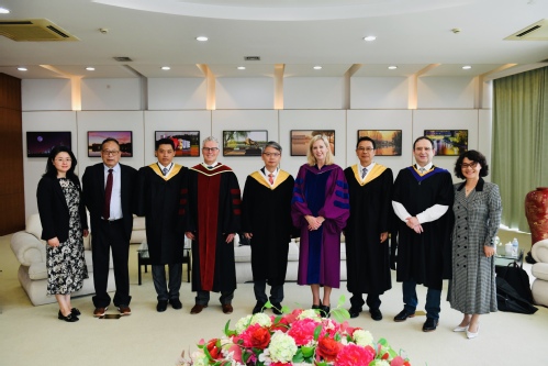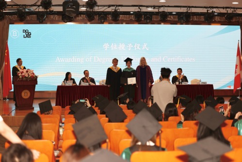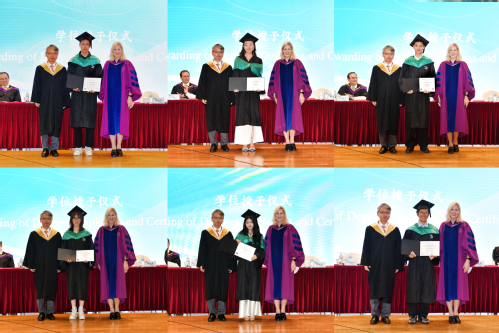在学位授予仪式上,徐永林宣读毕业生名单,Kathy Denton与祁明为各位毕业生颁发文凭、拨穗并合影留念。