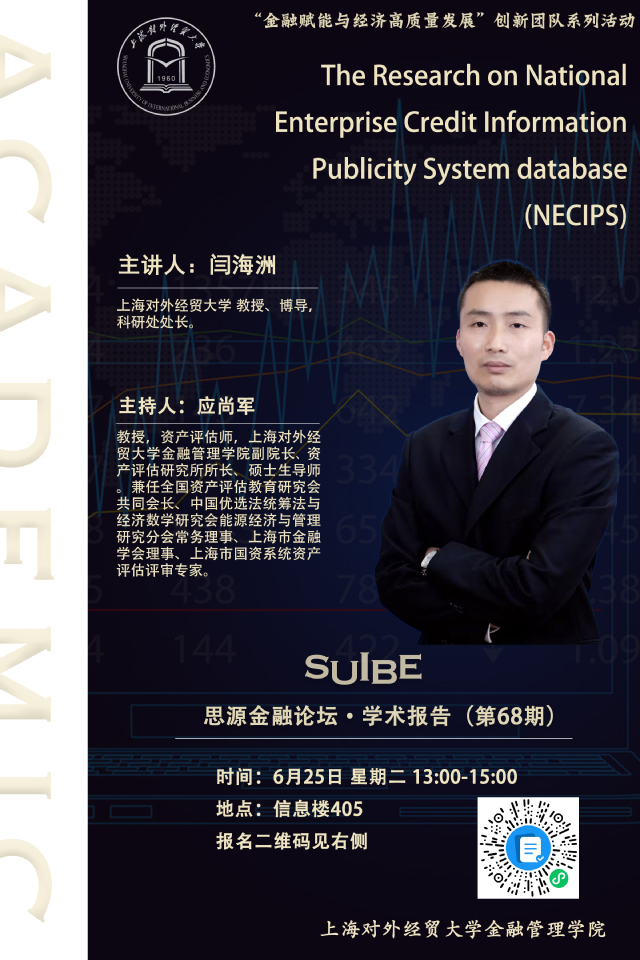 【SUIBE思源金融论坛——学术报告第68期】The Research on National Enterprise Credit Information Publicity System database (NECIPS)