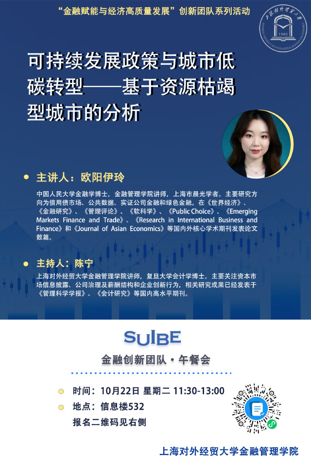【学院创新团队活动丨午餐会】可持续发展政策与城市低碳转型——基于资源枯竭型城市的分析