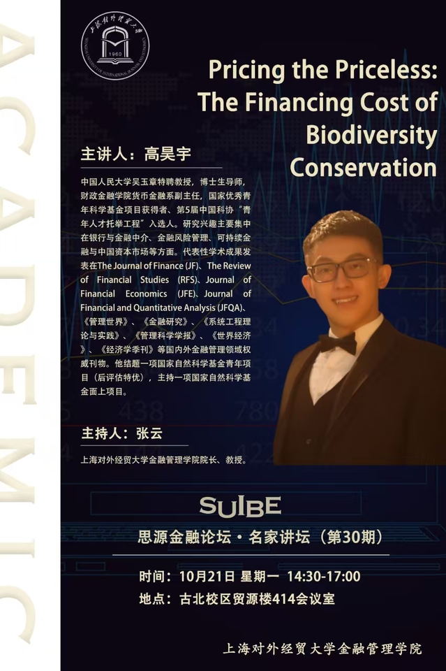 【思源金融 |名家讲坛第30期】Pricing the Priceless: The Financing Cost of Biodiversity Conservation