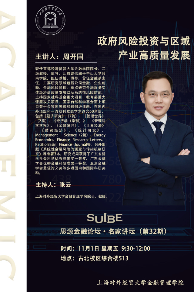 【思源金融 |名家讲坛第32期】政府风险投资与区域产业高质量发展