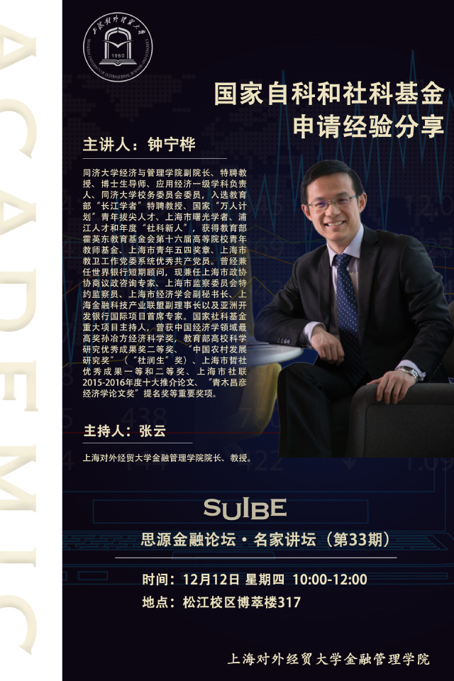 【SUIBE思源金融论坛——名家讲坛第33期】国家自科和社科基金申请经验分享