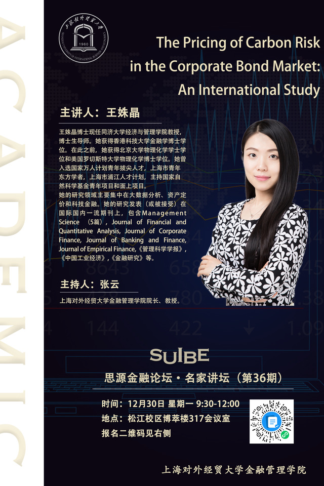 【SUIBE思源金融论坛——名家讲坛第36期】The Pricing of Carbon Risk in the Corporate Bond Market: An International Study