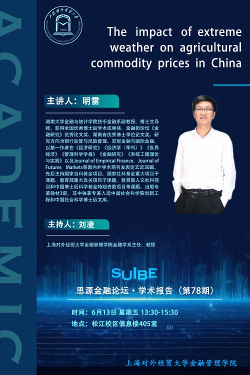 【思源金融丨学术报告第78期】明雷 The impact of extreme weather on agricultural commodity prices in China
