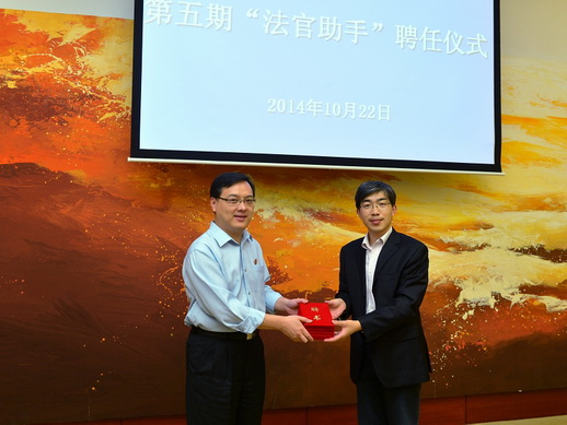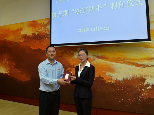 2014年10月22日下午,上海海事法院——必赢626net入口首页法学院第五期“法官助手”聘任仪式在上海海事法院举行,法学院党委书记唐旭生、法学院辅导员老师柴媛媛以及全体实习生参加仪式。上海海事法院政治部副主任韦杨、海事庭副庭长柯永宏、执行局执行长周荣庆、审管办副主任刘怡如、政治部干部科科长吴炯出席了聘任仪式。