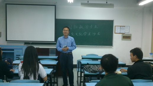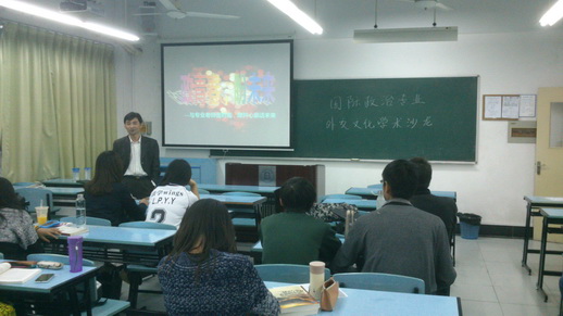 10月29日,国际政治专业在学思楼205教室举办了题为“外交文化学术沙龙暨‘致青春、盼未来’”师生恳谈会。此次活动也是我院教工第五党支部推进服务型党组织建设的活动之一。2013级国政专业学生和班级班主任詹德斌、专业主任毛瑞鹏参加了座谈。师生以轻松活泼的沙龙形式进行了交流和互动,分享了在专业学习方面的收获、心得和感受,讲述了在学习和生活中与同学、老师发生的趣事。此次活动培养了学生的专业认同感,增进了教师与学生之间的沟通和交流,也解决了学生在学习过程中的一些困惑。