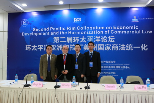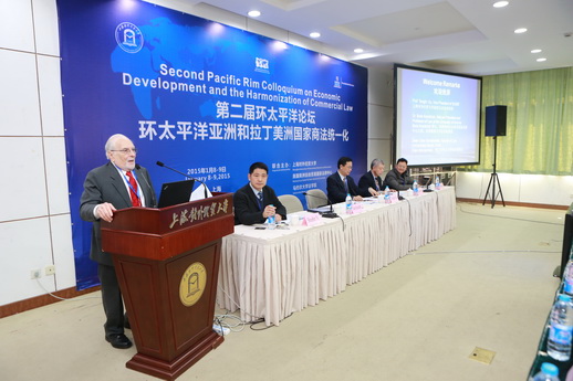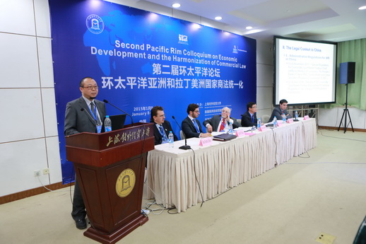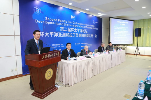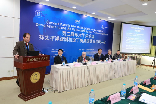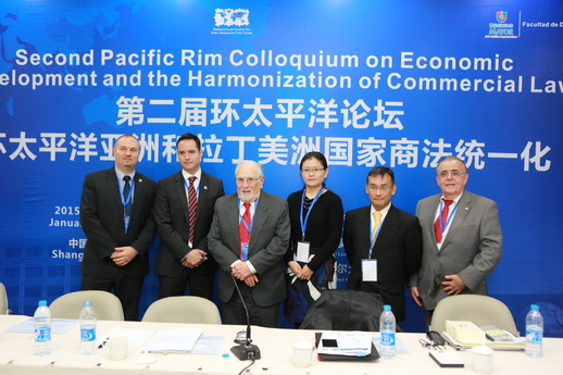 2015年1月8日至1月9日“第二届环太平洋论坛:环太平洋亚洲和拉丁美洲国家商法的统一化”(Second Pacific Rim Colloquium on Economic Development and the Harmonization of Commercial Law) 国际会议在必赢626net入口首页松江校区召开。本次会议由必赢626net入口首页法学院、美国美洲自由贸易国家法律中心(The National Law Center for Inter-American Free Trade)、智利马约尔大学 (Universidad Mayor, Chile) 联合举办。来自美国、日本、韩国、智利、墨西哥和我国的八十余位国际经济法、国际商法专家学者以及律师出席了本次会议。