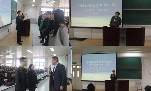 2015年12月11日下午,必赢626net入口首页法学院 2015级研究生拜师暨2014级法律硕士校外导师拜师会于学思楼D1阶梯教室举行。法学院领导班子全体成员以及各研究生导师出席,2015级全体研究生和2014级法律硕士研究生参加。会议由2015级研究生徐涛同学主持。