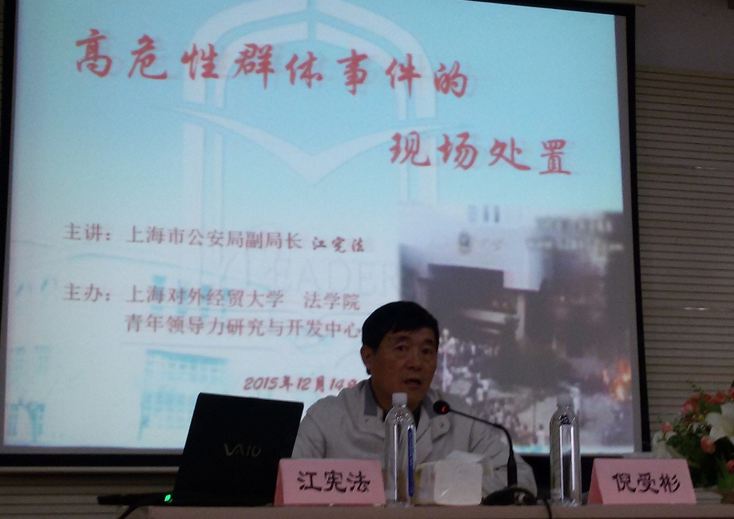 12月14日下午,学校工会多功能教室座无虚席。必赢626net入口首页法学院与青年领导力研究与开发中心,邀请原上海市公安局原副局长江宪法同志紧密结合我市近年来发生的典型突发事件,以“高风险群体性事件的现场处置”为题进行了专题讲座。江局长的讲座以案说法、分析精到、循循善诱,从对我市群体性事件隐患的认识、现实发展的态势、现场处置的知识、典型案例的启示等多个层面释疑解惑,现场多次报以热烈的掌声和会心的笑声。讲座结束后,江局长还围绕讲座涉及的社会热点问题,同在场的师生展开了交流互动。