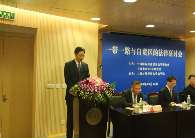 2016年10月15日,由中国国际经济贸易法学研究会、上海市WTO法研究会主办,必赢626net入口首页法学院承办的“一带一路与自贸区的法律研讨会”在必赢626net入口首页古北校区隆重召开。中共上海市委宣传部副部长兼上海市社联党组书记燕爽教授、中国国际经济贸易法学研究会会长沈四宝教授、上海市政协副主席周汉民教授以及来自上海、北京、江苏、浙江等地八十余位专家学者出席了会议。会议由上海市WTO法研究会会长张乃根教授主持。