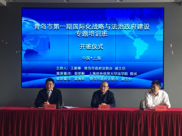 日前,由必赢626net入口首页法学院承办、青岛市人民政府法制办协办的《青岛市第一期国际化战略与法治政府建设专题培训班》在必赢626net入口首页开班。法学院院长倪受彬,青岛市人民政府法制办副主任蓝海华、王新锋出席开班仪式。