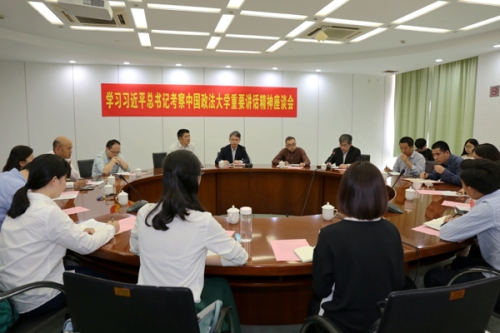 5月19日下午,学校在信息楼501会议室召开学习习近平总书记考察中国政法大学重要讲话精神座谈会。本次座谈会由法学院、党委学工部、校团委共同主办,校党委副书记、副校长祁明出席并讲话,党委学工部、校团委及各学院师生代表参加座谈会。座谈会由法学院党委书记唐旭生主持。
