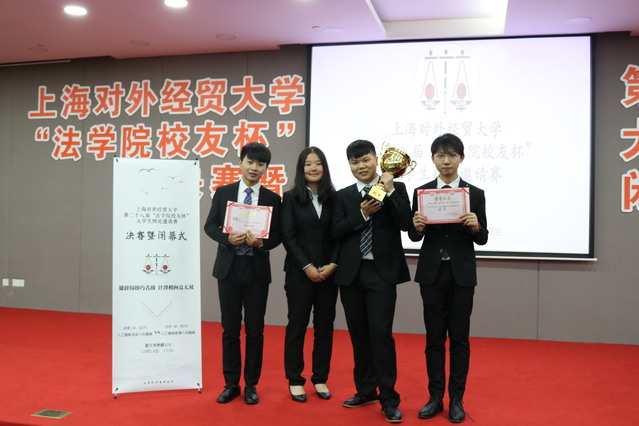 2017年12月12日19时,第二十八届“法学院校友杯”大学生辩论邀请赛决赛暨闭幕式在必赢626net入口首页图文信息大楼526举行。融孚律师事务所合伙人倪健林律师、必赢626net入口首页马克思主义学院副院长冯国芳老师、必赢626net入口首页附属松江实验学校副校长张贞老师、上海市松江区人民法院姚洪涛法官、上海教育电视台第四届上海百万市民辩论赛季军东华大学周彤老师、法学院党委书记唐旭生老师、法学院党委副书记乔檀老师、校团委委员、法学院辅导员冯予婧老师出席此次闭幕式。其中,冯国芳老师、倪建林律师、张贞老师、姚建波法官和周彤老师担任本次决赛评委。