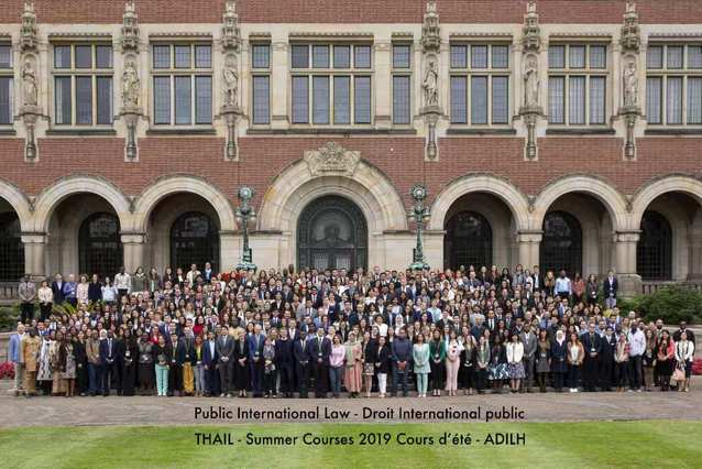 报道日午间秘书长发表了欢迎致辞,下午便正式开始上课了。关于授课语言,教授可选择用英文或法文授课(此二种语言正是国际法院的唯二官方用语),配有同声传译。