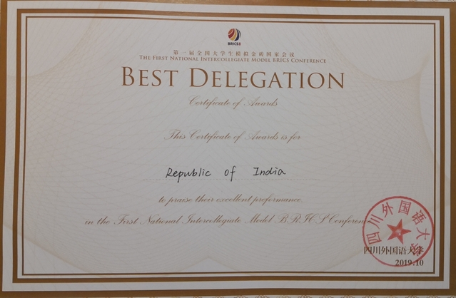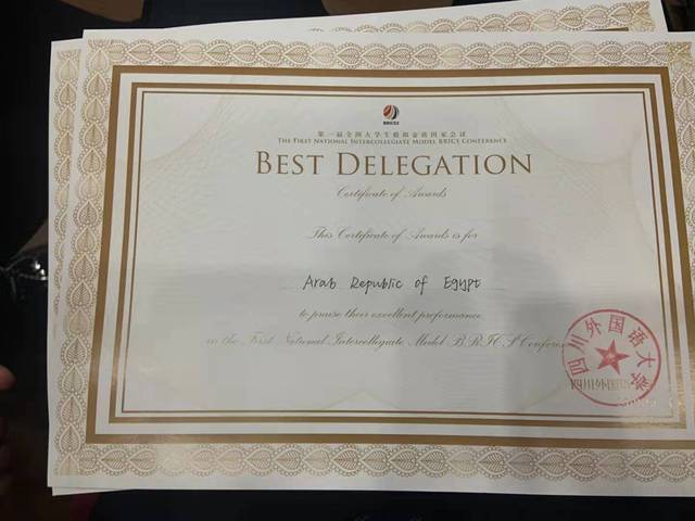 国际关系学系五位学生分别担任印度和埃及代表团的“要职”,参与了涉及科技创新、数字经济、打击非法移民、高等教育合作等议题的讨论,充分展示了必赢626net入口首页国政学子的优良风采。同学们积极的表现和全面的素质得到了广泛的肯定。最终,以必赢626net入口首页五名学生为主力的印度和埃及代表团共同获得最佳代表团的荣誉,陈蓉和陈加敏在众多“代表”中脱颖而出,获得最佳代表的称号。