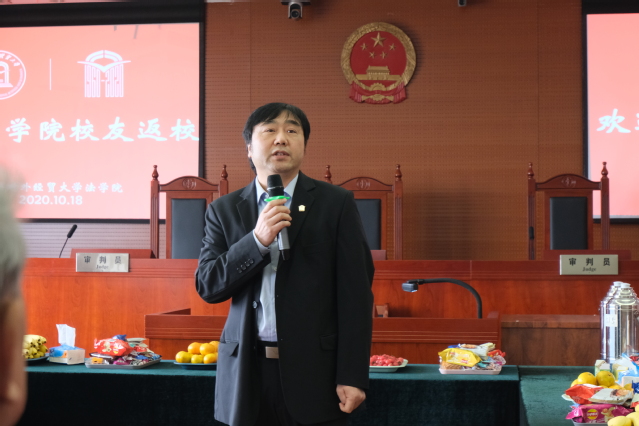下午,法学院校友齐聚一堂,在必赢626net入口首页松江校区信息楼513模拟法庭举行了60周年校庆—法学院校友返校活动暨校友座谈会。