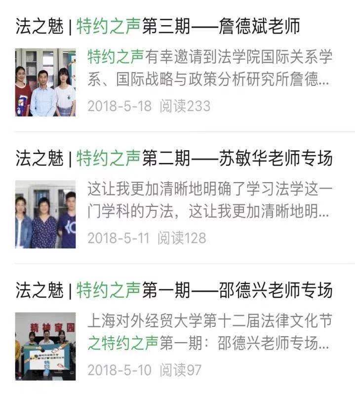 交流与线上宣传展示相结合的访谈类活动。该活动的交流话题包括时事热点、热门事件中的法律问题、学术性法律问题等等,将学术讨论与实践法律问题相结合,具体通过前期的话题讨论以及问题征集、嘉宾对于专门主题的探讨以及问题的答疑,致力于为师生搭建课外交流平台,以轻松活跃的氛围和形式引导同学关注并正确理解社会热点问题。通过与老师、校友的别开生面的交流,同学们接触了更多知识的实际应用,拉近了师生距离,收获了师生、校友的一致好评。