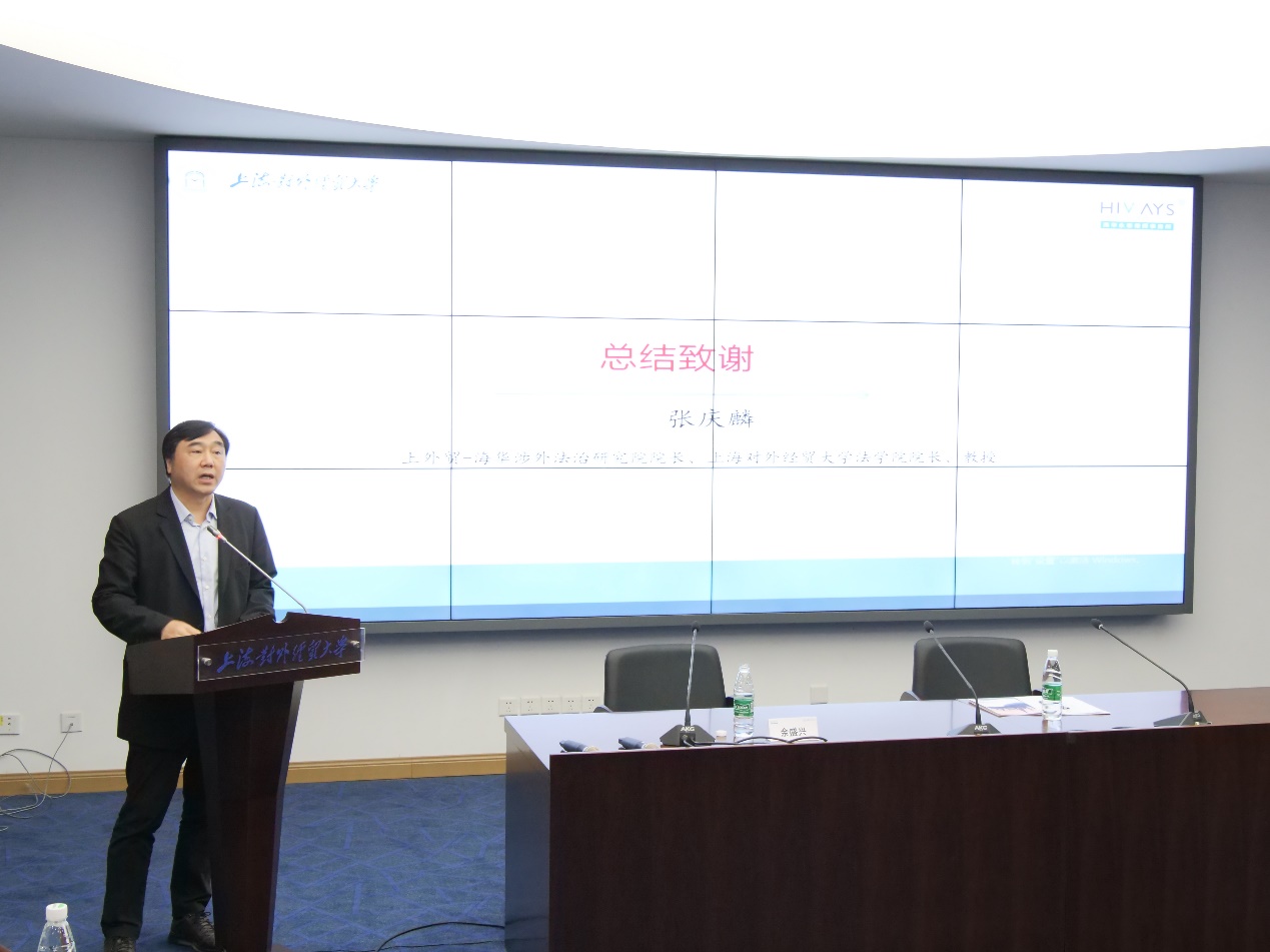 最后,张庆麟院长对全体嘉宾致谢,感谢各位嘉宾到场并分享经验,将会根据嘉宾建议完善法治研究院的后续工作,也将聚集各方面人才力量开展研究院的研究和人才培养,为国家贡献智力支持。今后研究院会组织更多的学术会议研讨会议,为国家涉外法治发展贡献力量,也希望更多的社会力量参与。