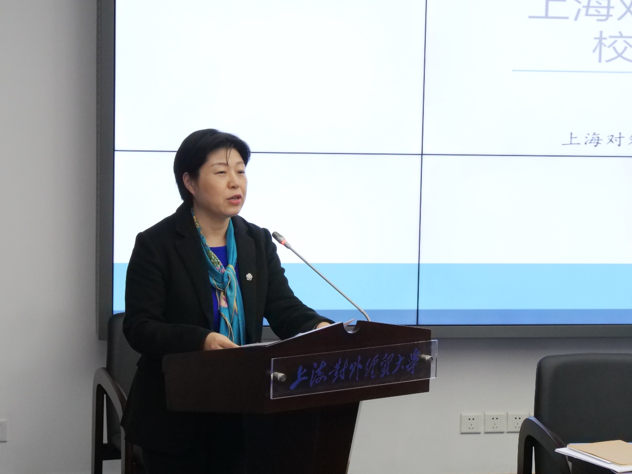 舒寰部长代表贸促会法律部致辞,表示研究院的建立为国家涉外法治建设提供支撑,正当其时,贸促会愿意支持上外贸涉外法治人才培养的重任。