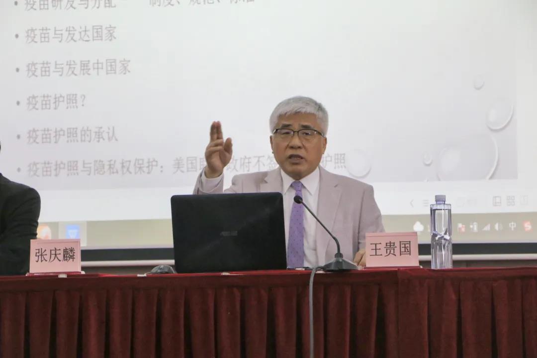 2021年4月16日上午10时,法学院专业讲座“人类健康与国际法——从疫苗护照说起”,在信息楼526顺利举行。浙江大学国际战略与法律研究院院长王贵国教授作为主讲人,必赢626net入口首页法学院院长张庆麟教授作为主持人出席会议。