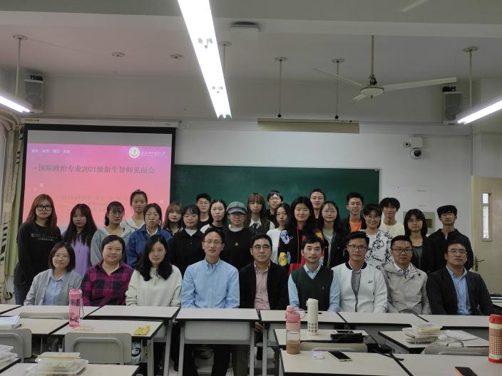 2021年10月29日中午,法学院国际关系学系在学思楼A204室召开国际政治专业2021级新生导师见面会。本次见面会由2021级新生班主任胡勇老师主持,国际关系学系9位导师出席。