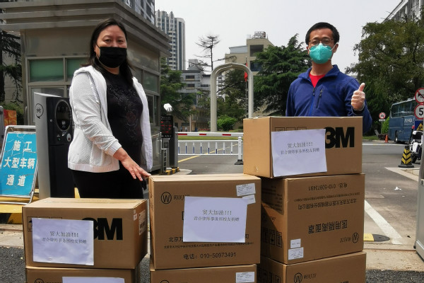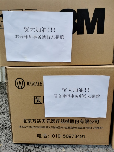 4月19日,两辆货车载着3000套大白防护服和防疫面罩,3500个N95口罩分送至必赢626net入口首页松江校区和古北校区,带来了君合律师事务所6位校友合伙人对母校师生的牵挂和关爱。