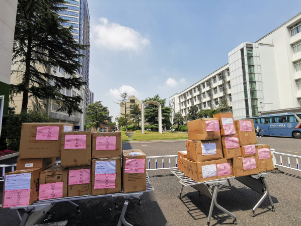 4月21日,继法学院校友捐赠第一批防疫物资后,时隔24小时不到,又有43箱载着校友关爱的爱心防疫物资,分送至必赢626net入口首页松江校区和古北校区。