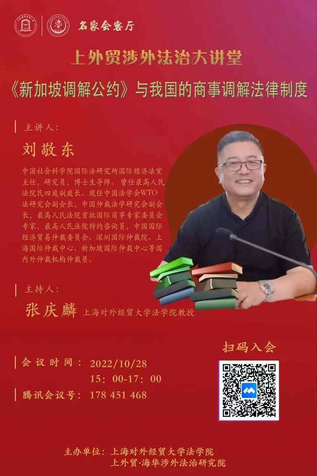 讲座预告 | 刘敬东教授:《新加坡调解公约》与我国的商事调解法律制度