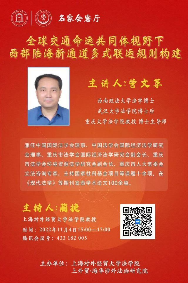 讲座预告|曾文革教授:全球交通命运共同体视野下西部陆海新通道多式联运规则构建