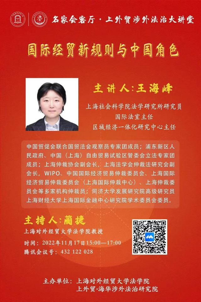 讲座预告|王海峰博士:国际经贸新规则与中国角色