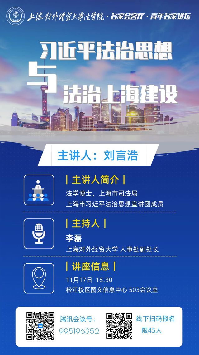 讲座预告|刘言浩博士:习近平法治思想与法治上海建设