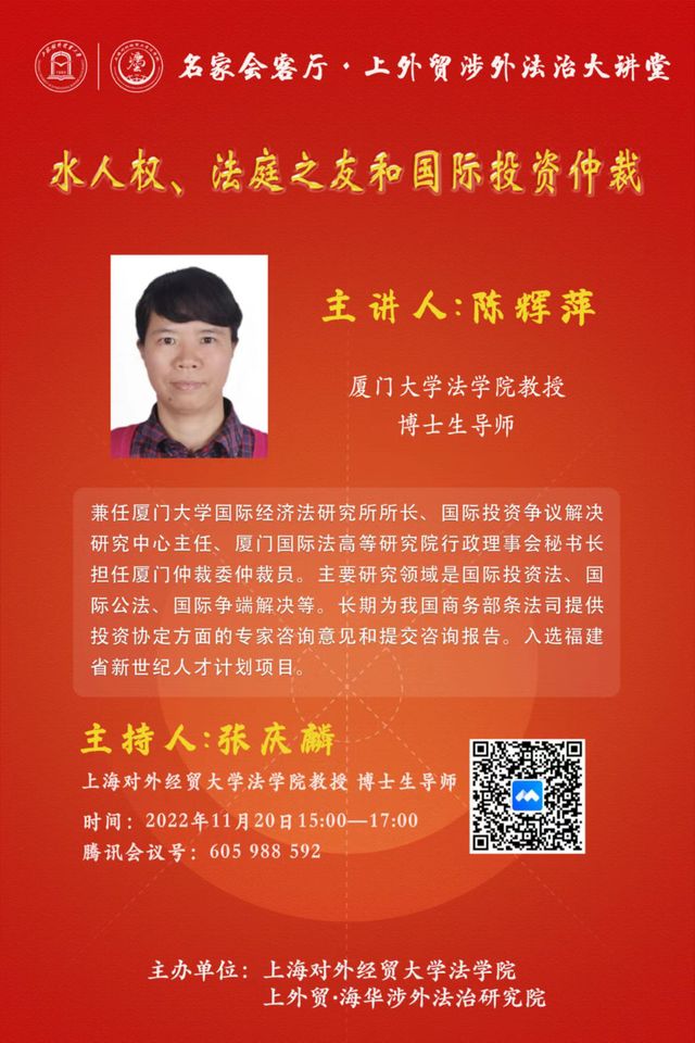 讲座预告|陈辉萍教授:水人权,法庭之友和国际投资仲裁