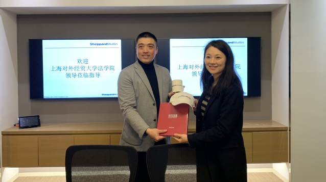 2023年3月17日,法学院党委书记黄静、副院长陶立峰、党委组织员冯予婧、毕业班辅导员杨扬一行走访美国盛智律师事务所(Sheppard Mullin)驻上海代表处,就双方合作共建座谈交流。盛智(上海)管理合伙人张小艺(2002届校友)、资深顾问陆媛梅、律师郭芮琪等出席接待。