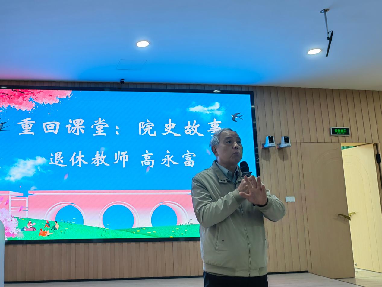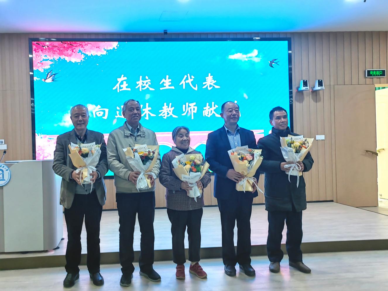 为了让校友重温课堂氛围,本次活动邀请了法学院教授高永富老师讲述院史。在校生代表向出席本次活动的退休教师献花,表达感念师恩之情。