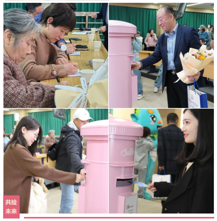 在“共绘未来”环节,退休教师陈百俭、张菊英,校友代表2002届国际法本科生张小艺、2015届民商法硕士生乔营强依次分享了他们在学院的经历。与会人员也纷纷在明信片上写下对学院的祝福,并投递至樱花邮筒中。