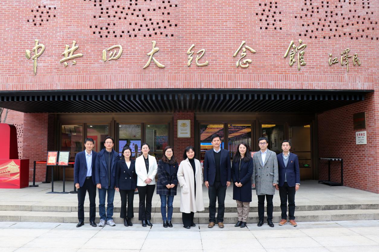 3月24日上午,统计与信息学院与法学院、马克思主义学院等一行走访调研了中共四大纪念馆,就共建合作进行了交流研讨。参加此次走访活动的有统计与信息党委书记刘素贞、副书记范鸣、经济统计系主任李佩瑾,法学院党委书记黄静、副书记商志民、国际关系学系教工党支部书记吴晓锋,马克思主义学院副院长庾向芳,研究生院副院长郝程程。中共四大纪念馆党支部书记、馆长童科,党支部副书记、副馆长吴毅斌等热情接待了学校一行。