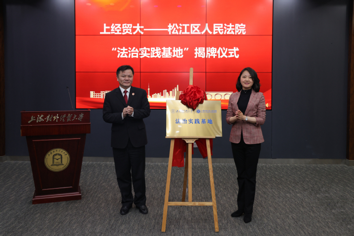 会上,校招生就业处处长魏舒和松江区人民法院政治部副主任邵志杰共同为上经贸大——松江区人民法院“法治实践基地”揭牌。
